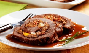 • Espalhe o tutu sobre a carne, enrole como um rocambole e amarre com barbante para não soltar o recheio.