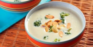 - Adicione os brócolis e, na hora de servir a sopa, salpique as amêndoas tostadas.