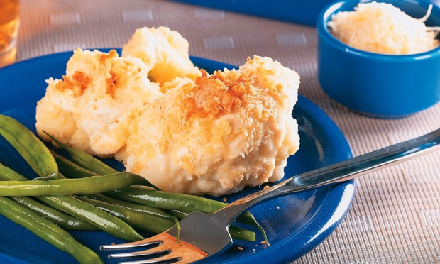 • Despeje sobre a couve-flor e polvilhe o queijo.