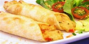 - Distribua porções do recheio no centro de cada disco de massa e feche unindo as bordas opostas formando um rolinho.