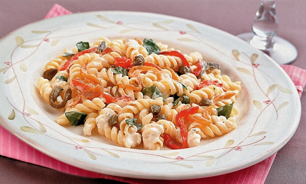 • Derrame o molho sobre a massa já fria e, finalmente, acrescente a rúcula, mexendo com delicadeza.
