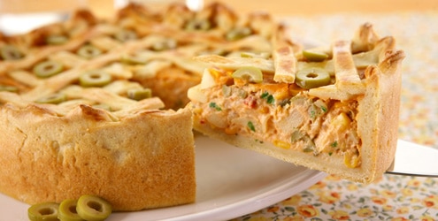 - Forre uma fôrma de aro removível de 25 cm com a massa (mas reserve algumas tiras para decorar).