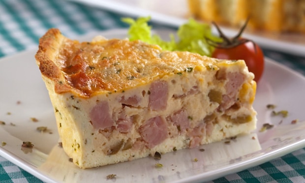 - Prepare o recheio: sobre a massa, distribua os cubos de peito de peru e a azeitona.