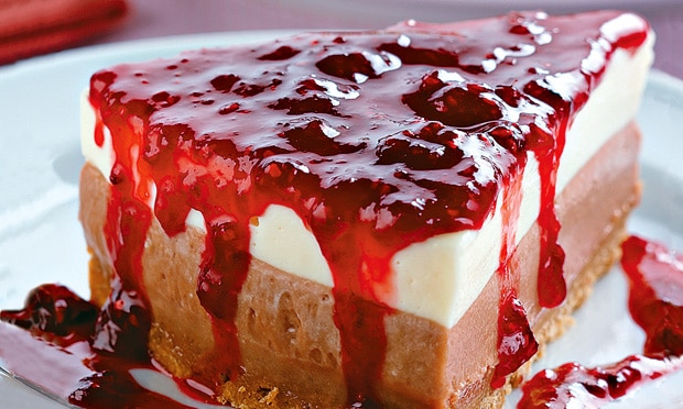 - Cubra com a calda de frutas vermelhas e sirva bem gelada.