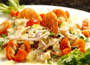 - Junte ao camarão os ingredientes da salada e mexa para envolvê-los bem.
