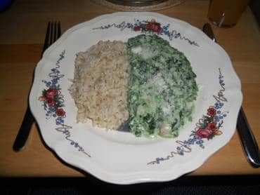 - Junte o espinafre reservado e o creme de leite, mexa bem retire do fogo antes que ferva.
