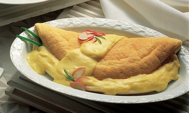 - Coloque a omelete em um prato, dobre ao meio, regue com o molho e sirva.