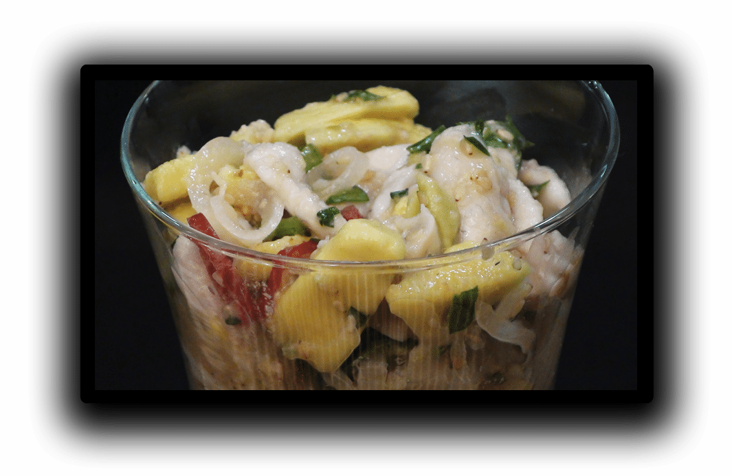 - Após esse período, na mesma tigela, acrescente os demais ingredientes um a um: o alho amassado, pimenta-dedo-de-moça fatiada, molho shoyu, o gengibre bem raladinho (caso não goste da consistência utilize apenas o caldo), cebola roxa em fatias finas (caso queira tirar a acidez deixe na água gelada por uns quinze minutos), o abacate picado, óleo de gergelim e as sementes de gergelim e finalize com o cheiro-verde.
