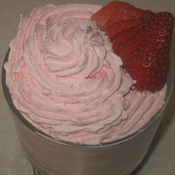 • Misture delicadamente o creme de leite e as claras em neve com os morangos batidos e sirva imediatamente.