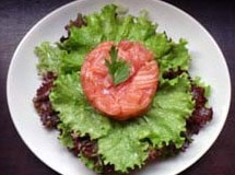 - Você pode usar um anel de metal vendido em lojas de confeitaria para modelar o tartar de salmão.