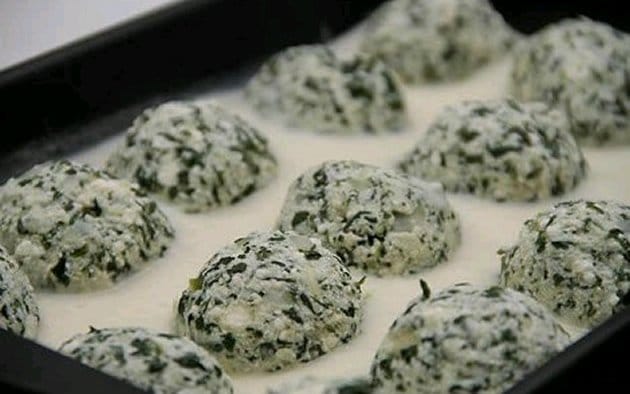 - Com um boleador de sorvete ou uma colher de sopa faça nhoques grandes, do tamanho de meio limão.