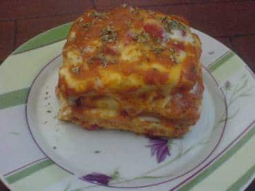 - Coloque como última camada juntamente com um pouco do molho de tomate também.