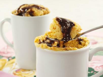 - Despeje a cobertura nas canecas com o bolo assado, espere amornar e sirva.