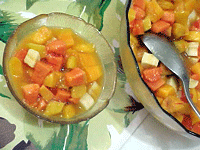 • Descasque todas as frutas e corte também em cubos.