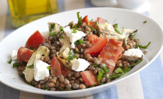 • Em uma tigela, coloque a lentilha já cozida, salpique com azeitonas cortadas e salsinha.