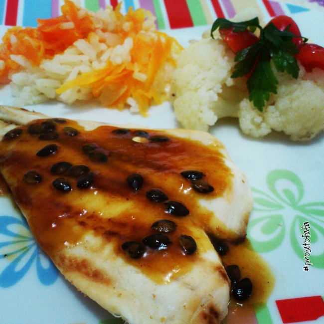 - O peixe foi feito na grelha elétrica, coloquei só um fio de azeite para não deixar o peixe grudar (o filé estava bem fininho), e grelhei dos dois lados.