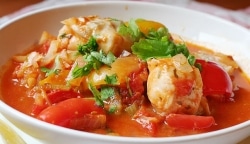 • Coloque em uma panela o óleo, a cebola picada, coentro, tomate picado e o colorau.