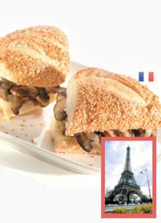 • Monte o sanduíche: abra a baguete ao meio, coloque a mussarela e o cogumelo.