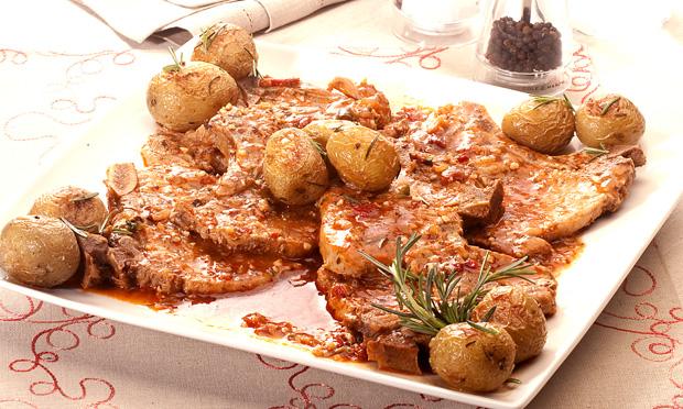 - Em outra panela de pressão, ponha as batatas lavadas, o azeite, mais sal e o alecrim.