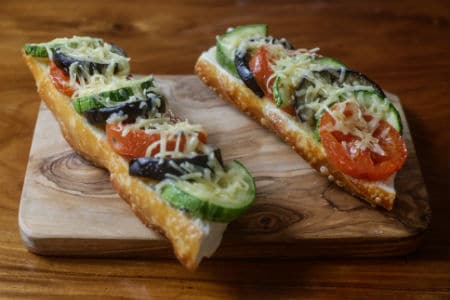 - Lave e seque a berinjela, abobrinha e o tomate.