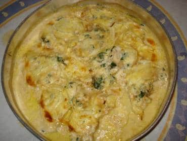 • Coloque a cebola picada e deite o creme de leite com o requeijão derretido, cubra com o queijo ralado.