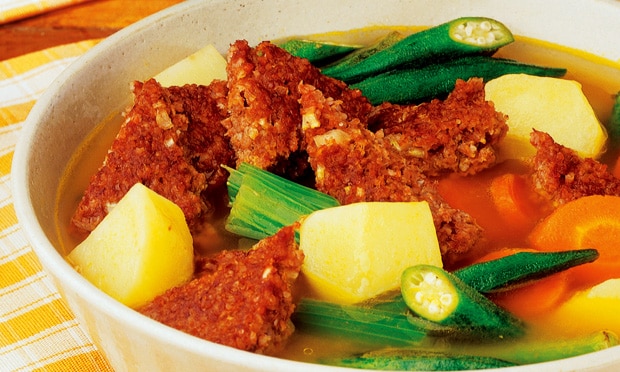 - Acrescente os legumes e o caldo de carne e cozinhe até os ficarem macios.