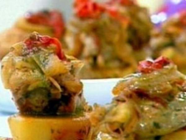 - 3 batatas grandes sem casca cortadas em rodelas grandes e temperadas com sal