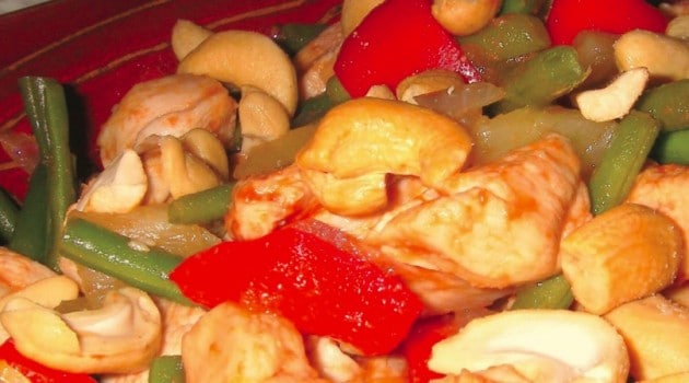 - Acrescente o amendoim, a pimenta e a salsa e refogue 2 minutos.