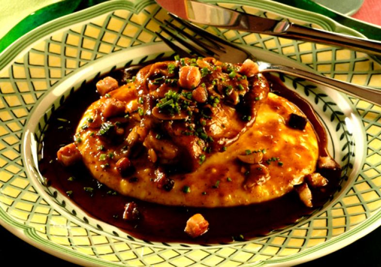- À parte, doure o bacon na manteiga e acrescente os cogumelos.