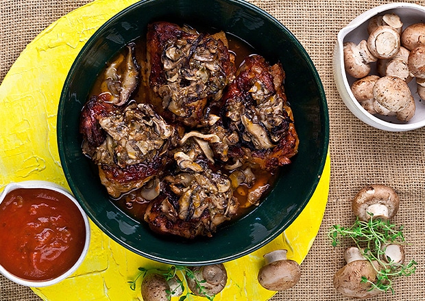 Modo de Preparar a Sobrecoxa com Mix de Cogumelos