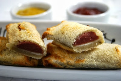 • Coloque um pedaço de salsicha, enrole delicadamente e com a ajuda de um garfo feche as pontas.