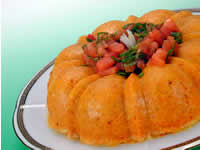 • Desenforme o pudim sobre um prato e sirva com o molho de tomate.