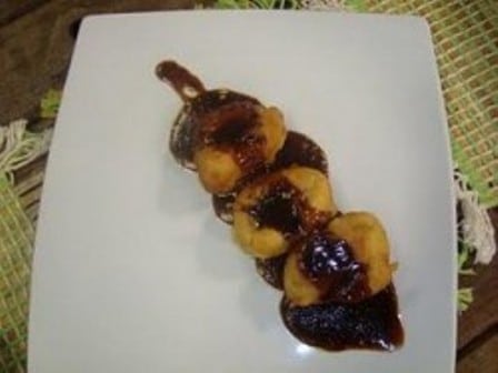 - Corte a banana, passe os pedaços em um pouco de farinha.