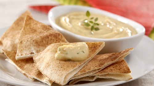 - 1 pacote de pão sírio integral contado em fatias pequenas.