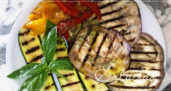 - Arrume os legumes grelhados em um prato de servir, tempere com glutamato e ervas finas a gosto.