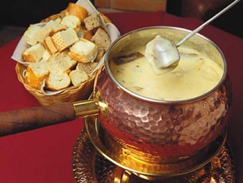Fondue de Queijo: Suíço, Cheddar, Edam, Gouda, Gruyère, Mussarela, Provolone.