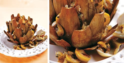 - Adicione o fundo de alcachofra e refogue por meio minuto.