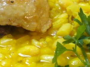 • Adicione parte do caldo de galinha, a salsa e mexa.