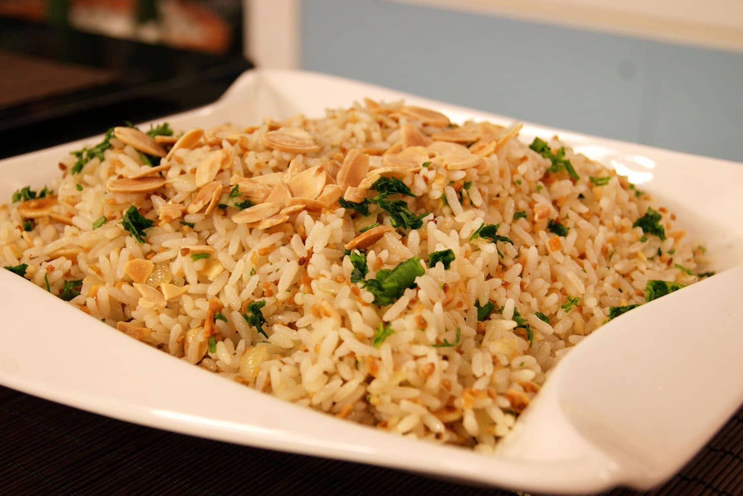 • 2 xícaras (chá) de arroz parboilizado lavado e pré cozido