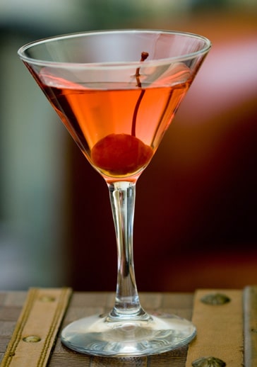 • A seguir, coar o drink gelado na taça de Martini e decorar com uma cereja.