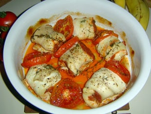 Filé de Peixe Recheado com Linguiça e Tomate Seco