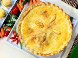 - Cubra a torta com o restante da massa esticada e fina, deixando as tiras para fazer treliças como decoração.