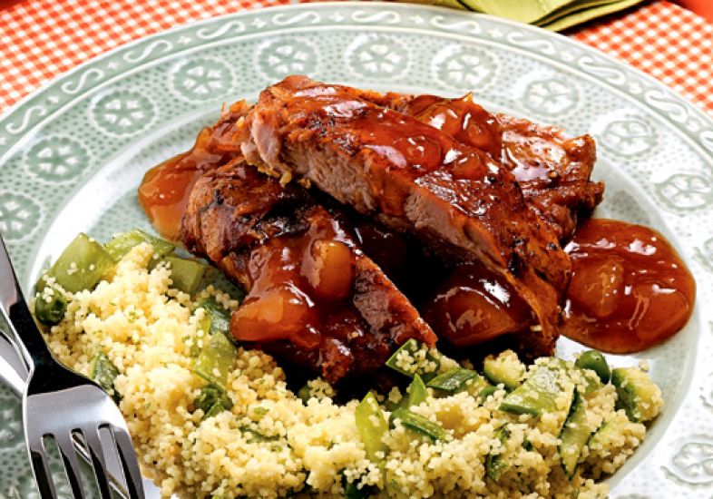 - Sirva as costelinhas com o caldo da assadeira, colheradas do chutney de manga e gengibre e o cuscuz.