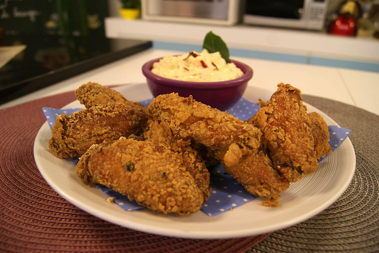 - Em uma vasilha, coloque as asinhas de frango e tempere com todos os ingredientes.