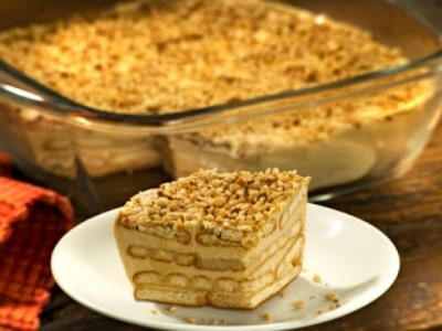• Ponha uma camada de bolacha umedecida sobre um refratário, acrescente o creme e vá alternando as camadas.