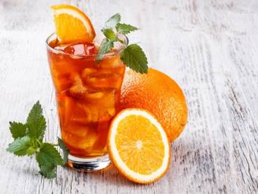• Sirva em um copo com muito gelo, uma casquinha de laranja e folhas de hortelã para decorar.