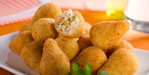 - Passe na mistura do ovo e água e por fim empane com a farinha de rosca.