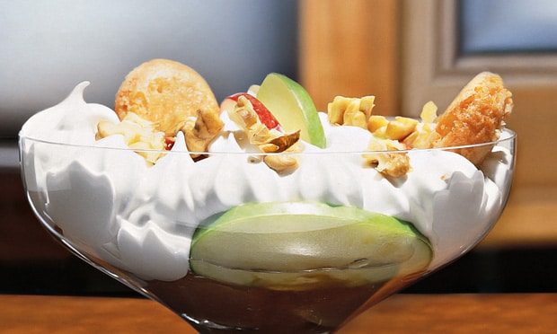• Coloque o restante das maçãs e polvilhe com as nozes.