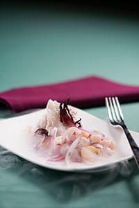 - Deixe marinar por 5 minutos (a carne vai cozinhar naturalmente, sem fogo, somente com o ácido ascórbico do limão).