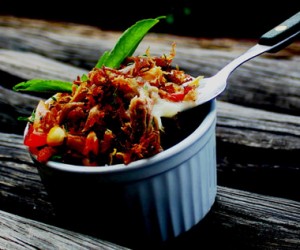 • Em uma frigideira grande, coloque a manteiga de garrafa com a última cebola, cortada longitudinalmente, e deixe dourar para colocar a carne já desfiada.